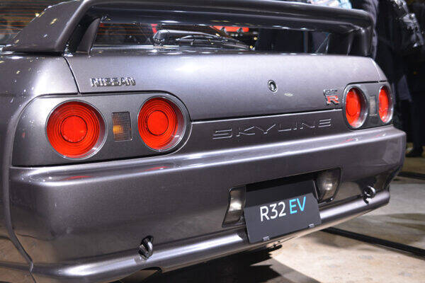 R32スカイラインGT-Rは1989年に発売され、当時の国産車最強の280馬力を誇った歴史的スポーツカーのひとつ。これを車体などをそのままにEV化したのが「R32EV」です。オートサロン開催前からSNSなどで話題を呼んでいました。