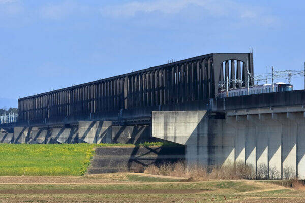同課は「河川の中の区間の下部工はすでにできていますが、その前後の橋梁部分(取付部)は、何も無い状態からつくっていくため」、事業期間を18年に設定したと明かしました。取付部も真ん中に鉄道を挟む構成となるものの、下部工は鉄道とは別々になります。