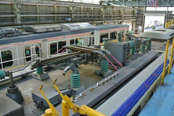 この突き合わせ箇所に電気は流れていません。こうした箇所は「デッドセクション」と呼ばれますが、今回の出火トラブルはここで発生。運転士が交流から直流に切換を行わなかったために起きたのです。