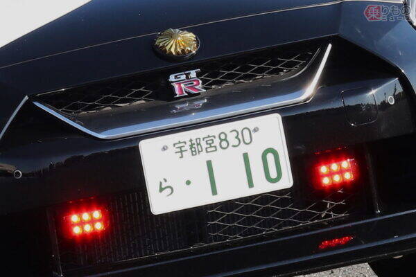 栃木県警の日産「GT-R」パトカー(乗りものニュース編集部撮影)。