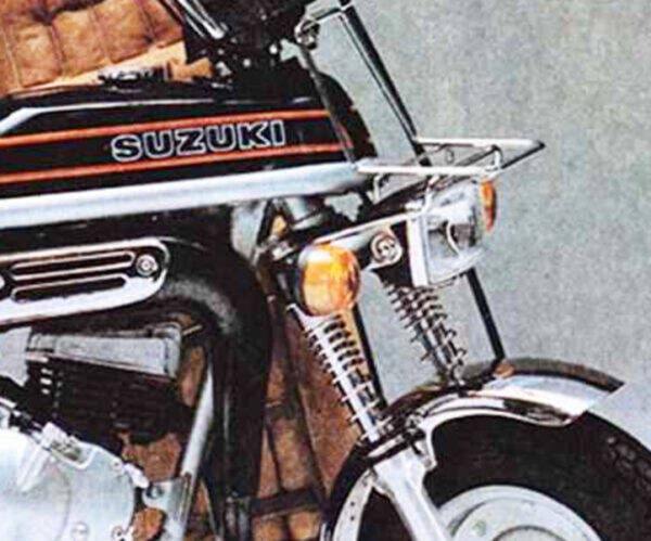 さらに、初代にして当時はまだ珍しかった角目ライトを搭載し、スポーティな印象を与えました。そのスポーティな雰囲気は足回りにも及び、ブーツを履かないフロントフォークもまた無骨なイメージを与えました。