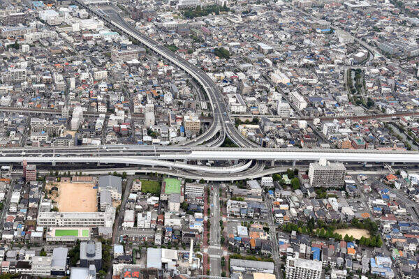 名神の終点である西宮IC。手前側に延伸して阪神高速湾岸線までつなぐ名神湾岸連絡線の事業が進められている(画像:PIXTA)