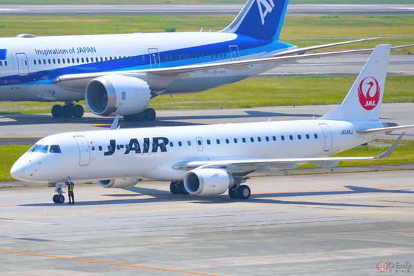 J-AIRの旅客機(乗りものニュース編集部撮影)。