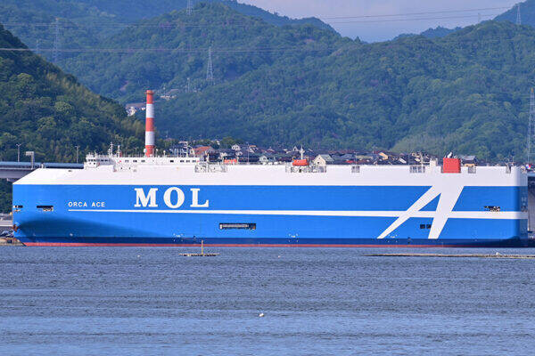 商船三井グループの自動車船「オルカ・エース」(深水千翔撮影)