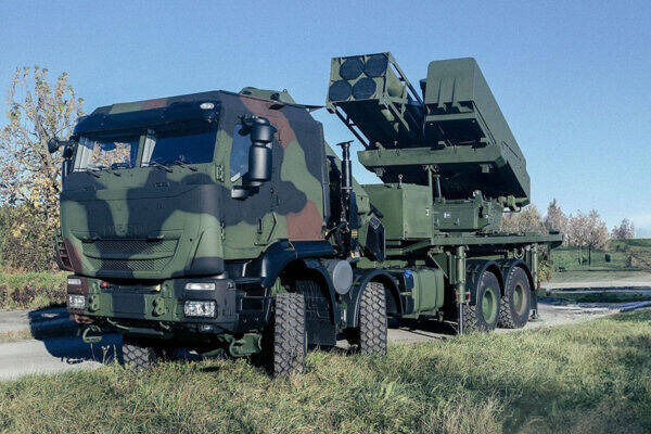 発射実験中の「MARS 3(マーズ3)」と運搬車両(画像:KNDSドイツ)