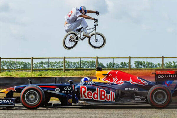 【動画】ギリギリ! これが、F1マシンの上を飛ぶBMXライダーです