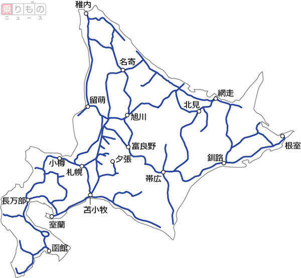 「単独では維持困難な線区」すべて廃線だと、残るのは…JR北海道の「単独では維持が困難な線区」、一部報道によると、それは10路線13線区で、長さにすると計1237.2km。もしそれら線区が廃止されたら、JR北海道の路線は、営業キロの長さが現在の半分近くになってしまう計算です。北見・網走方面を走る石北本線や釧網本線、根室本線の滝川~新得間と釧路~根室間、宗谷本線の名寄以北、日高本線などが含まれます。
