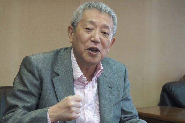 インタビューに応じるいわさきコーポレーションの岩崎芳太郎会長(鹿児島市で大塚圭一郎撮影)
