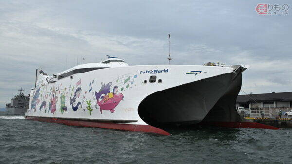 大分港に入港する「ナッチャンWorld」(伊藤洋平撮影)。