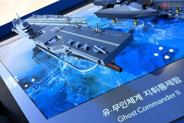 2025年10月17日から24日まで1週間の日程で開催されていた「ソウルADEX 2025」で、韓国の防衛企業ハンファ・オーシャンが新たな艦艇コンセプト「ゴースト・コマンダーII」を公開しました。披露された模型は、アメリカ海軍の大型空母を彷彿とさせる外観をしており、会場内でも注目を集めていました。