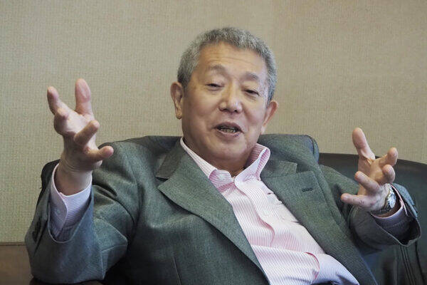 インタビューに応じるいわさきコーポレーションの岩崎芳太郎会長(大塚圭一郎撮影)