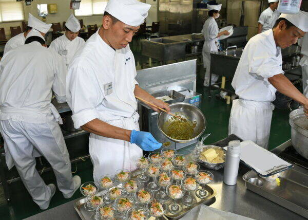 京都府舞鶴市にある海上自衛隊第4術科学校での調理実習の風景(画像:海上自衛隊)。