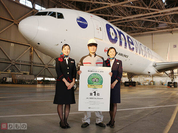 JALが次世代育成プログラム「空育(そらいく)」の一環として取り組む「JAL工場見学~SKY MUSEUM~」(以下「スカイミュージアム」)が、旅行口コミサイト「トリップアドバイザー」の「行ってよかった!無料観光スポットランキング2016」で1位を獲得。2016年12月9日(金)、その表彰式が羽田空港内のJAL第2格納庫で行われました。