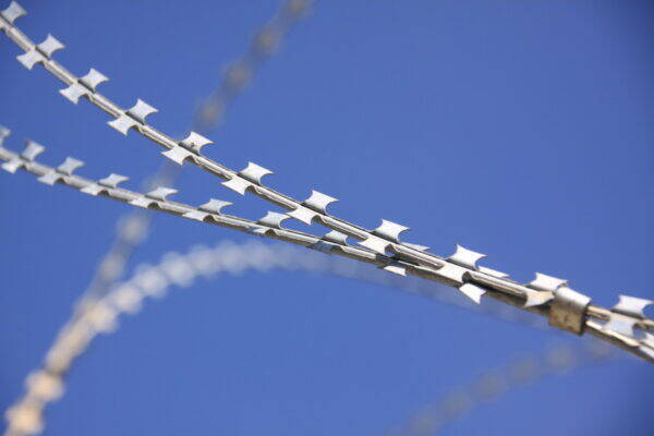 ただの有刺鉄線ではありません。レザーワイヤー(カミソリワイヤー)と呼ばれる、非常に凶悪なものです。