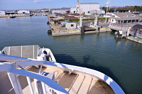 今回の見学会では、「おりんぴあどりーむせと」の避航デモンストレーションや自動着桟デモンストレーションが披露されました。