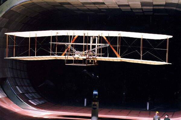 風洞実験を行うライトフライヤーのレプリカ(画像:NASA)
