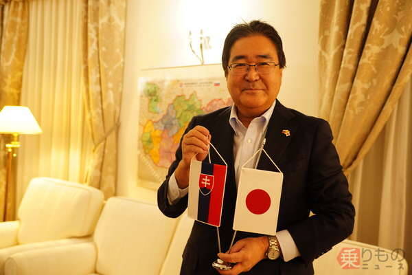 在スロバキア日本国大使館の川上泰弘・全権特命大使(乗りものニュース編集部撮影)。
