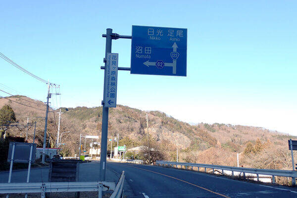 桐生市方面から西進してきた国道122号は大間々町市街の「大間々町6丁目」交差点で進路を変え、県道62号との重複区間となり、わたらせ渓谷鐵道も走る渡良瀬川の刻んだ峡谷に沿って北上します。そして「道の駅 くろほね・やまびこ」を過ぎた先の「下田沢」交差点を左折して県道70号との重複区間となり、急坂を上がった3kmほど先で県道70号は左に分岐し、県道62号の単独区間となります。