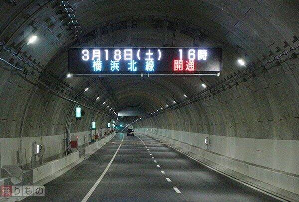 横浜北線の横浜北トンネル。電光掲示板で開通予定を案内していた(2017年2月9日、中島洋平撮影)。横浜北線は、首都高K1横羽線、K5大黒線、および第三京浜をつなぐ路線。首都高速道路によると、「新横浜を中心とする市内北部と横浜港、羽田空港方面とのアクセス性向上」「市内の高速道路ネットワークが強化されることによる物流の効率化」「災害時の医療搬送における信頼性の向上」といった効果が見込めるといいます。