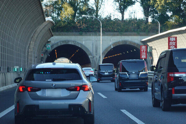 京葉道路上り線の貝塚トンネル(乗りものニュース編集部撮影)