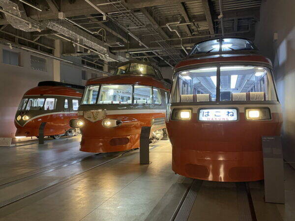 特筆すべきは、展示車両に“宿泊”できること。2026年3月から展示車両に仲間入りした「白いロマンスカー」ことVSE(50000形)、RSE(20000形)、HiSE(10000形)の3形式が宿泊車両となりました。