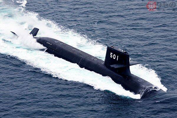 海上自衛隊のそうりゅう型潜水艦1番艦「そうりゅう」が浮上航行する様子。最大速力は20ノット(画像:海上自衛隊)。