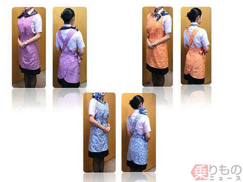 旧制服デザインのエプロンのイメージ。色は3種類(画像:ジェイアール東海パッセンジャーズ)。