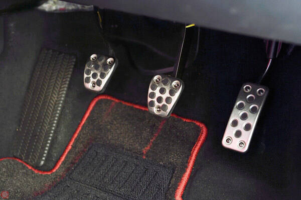 ホンダ「シビック タイプR」のペダル類。左端がクラッチペダル。