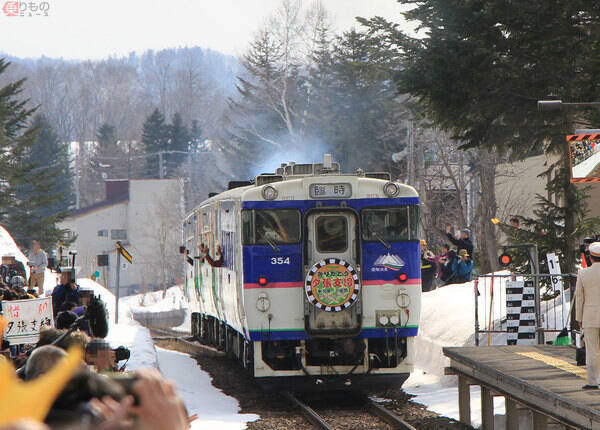 2019年3月31日、運行最終日の石勝線夕張支線。多くの鉄道ファンが沿線に詰めかけた(須田浩司撮影)。