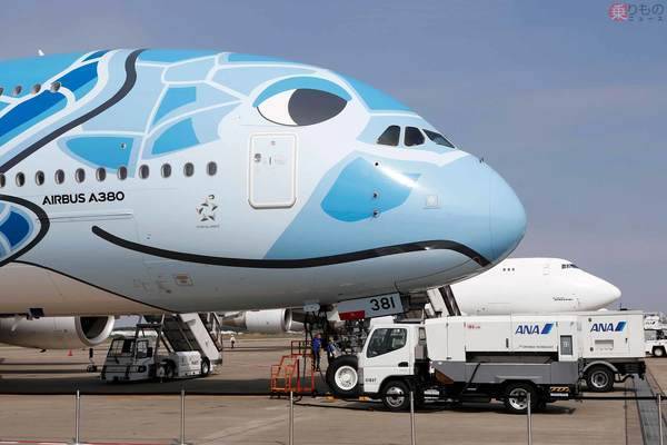なお、同機のサイズは全長72.7m、全幅79.8m、全高24.1m。LCCでも多く使われている小型のエアバスA320型機は、それぞれ37.6m、34.1m、11.8m、166席です(数値はANAのA320)。