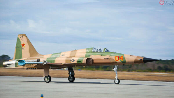 本意ではない形でF-5E/Fを導入することになったアメリカ軍ですが、高い運動性能を備えた同機は、訓練で旧ソ連製戦闘機、とりわけMiG-21の役を演じるにはこれ以上ない戦闘機でした。アメリカ海軍が仮想敵機として運用していたF-5E/Fは、1986(昭和61)年に公開された映画『トップガン』で、旧ソ連が開発したという設定の架空戦闘機MiG-28役も務めています。