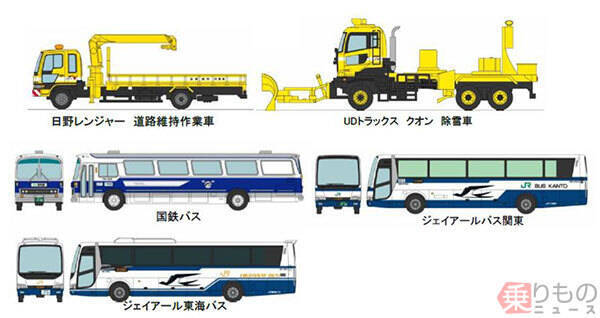実際に東名高速で使われていたり、走っていたりする道路作業車や高速バスの1/150スケール精密ミニカー「ザ・トラックコレクション」「ザ・バスコレクション」が、東名高速の全通50周年を記念して発売されます。