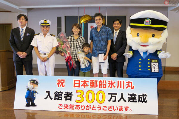 300万人目となったのは神奈川県茅ケ崎市から両親と3人で「氷川丸」を訪れた松井壮琉(たける)くん(5歳)です。船内で行われた記念セレモニーでは壮琉くんとその家族に記念品として、ザ・クルーズクラブ東京が運航するクルーズ船「レディクリスタル」のディナークルーズ(4名ぶん)などが贈られ、壮琉くんのお父さんは「300万人という長い歴史の一員となって光栄です」と話しました。