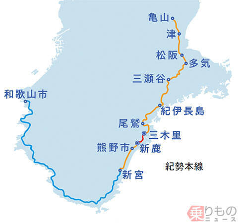 紀勢本線は、亀山駅(三重県亀山市)から和歌山市駅(和歌山県和歌山市)にかけて紀伊半島の海沿いを結ぶ路線です。1959(昭和34)年7月15日に三木里駅(三重県尾鷲市)から新鹿駅(同・熊野市)までの区間が開通し、紀勢本線が全通しました。