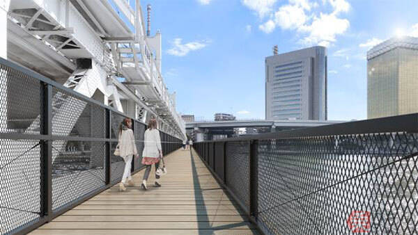 歩道橋は既存の鉄道橋下流側に添うように造ります。通路幅は2.5m、延長は約160mです。2020年の東京オリンピック・パラリンピック開催に向け、観光拠点である浅草(東京都台東区)と東京スカイツリータウン(同・墨田区)を結ぶ最短ルートとして整備し、回遊性向上を図ります。完成は2020年春の予定です。