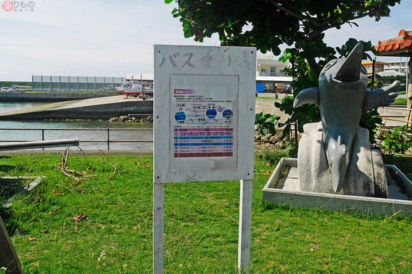 この「与那国島生活路線バス」は、2007(平成19)年にヨナグニ交通が運行から撤退し、与那国町に引き継がれて誕生しました。現在でも与那国空港には、ヨナグニ交通時代のバス停跡が残っています。運賃無料となった「与那国島生活路線バス」は、厳密には道路運送法に基づく一般路線バスではありません。道路運送法に基づくに路線バスとしての最西端バス停は、与那国島の東、西表島で運行する西表島交通の白浜バス停です。
