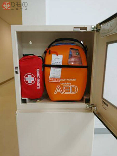 AEDボックスのなかに設置(画像:関西エアポート)。