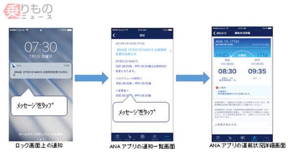 ANA(全日空)は2019年7月25日(木)、予約便の遅延や欠航などの情報を自動配信するサービスに、スマートフォンの「ANA」アプリとSMS(ショートメッセージサービス)を追加したと発表しました。