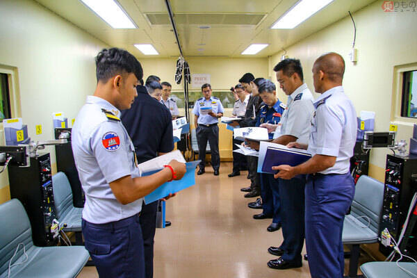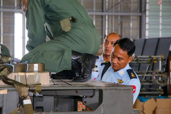とはいえ「最前線」は見学しないワケ各国の参加者は、若手ファイターパイロットからベテランと思しき士官まで多岐にわたっていました。たとえばラオス空軍中佐は、さかんに写真のシャッターを押すようこちらに頼んでくるなど、リラックスしている時間もありましたが、一転して関心の高いプログラムになると同一人物とは思えないくらい真剣になり、さすが現役空軍パイロットだと思わせます。物料コンテナの梱包作業の様子も見学できたのですが、間近に見る機会は少ないらしく、非常に熱心に見入っていたのが印象的でした。