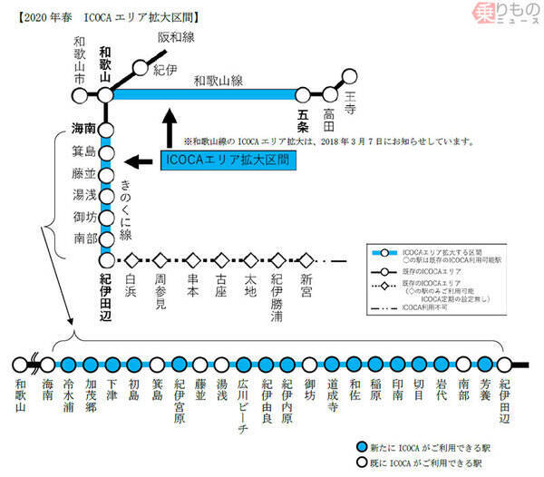 なお、2020年春には、JR和歌山線の和歌山~五条間でも、ICOCAサービスが導入される予定です。