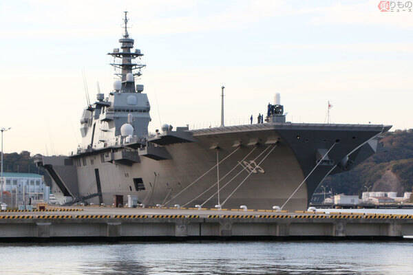 横須賀に停泊する海上自衛隊のヘリコプター搭載護衛艦「いずも」。