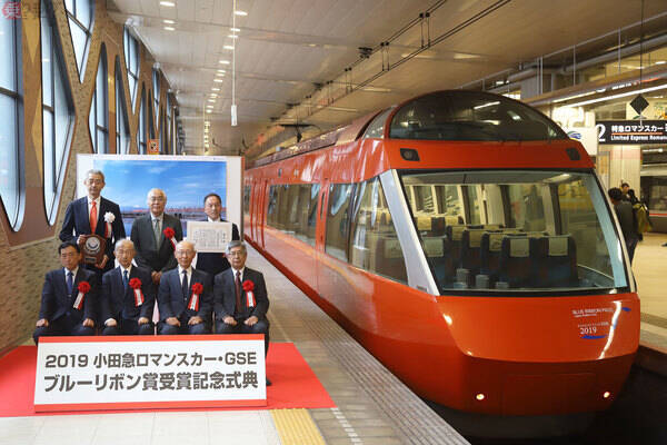 「GSE」は、展望席やスタイリッシュな車体デザインなど小田急ロマンスカーとしての伝統を継承しつつ、最新の設備・技術を惜しみなく導入してユニバーサルデザインの積極推進や環境負荷の低減を図っているとして、2019年5月23日(木)に「ブルーリボン賞」を受賞しています。