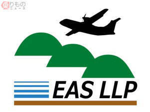 EAS LLPのロゴマーク。離島路線で多く使われているターボプロップ機が上昇する姿が描かれている(画像:JAL)。