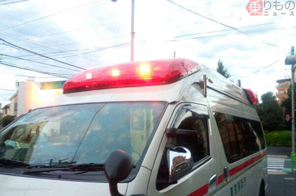 救急車は緊急出動時、サイレンを鳴らし、赤色の警告灯を点灯して走行する(画像:写真AC)。