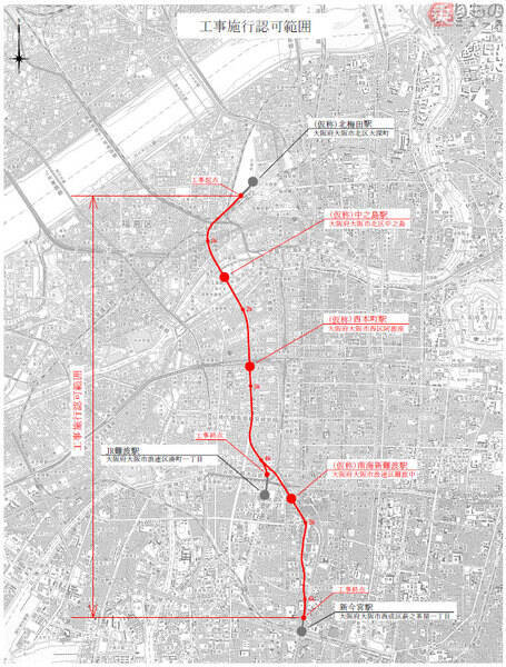事業許可を受けた鉄道を建設するにあたっては、国土交通大臣から工事計画の認可を受ける必要があります。なにわ筋線については2019年10月15日、関西高速鉄道が工事施行認可を申請し、2020年2月28日に認可を受けました。