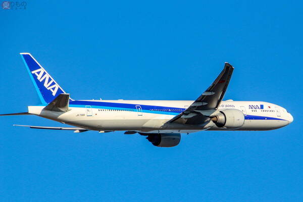 ANAのボーイング777-300ER型機。この日機内の様子が公開されたJA732Aと同モデル(2020年6月15日、乗りものニュース編集部撮影)。