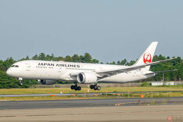 JALのボーイング787型機(2020年、乗りものニュース編集部撮影)。