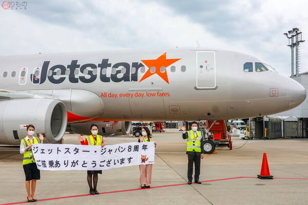LCC(格安航空会社)のジェットスター・ジャパンが2020年7月3日(金)、就航8周年を迎えました。拠点である成田空港の第3ターミナルでは、同社の片岡 優代表取締役社長も駆け付け、出発便を見送っています。