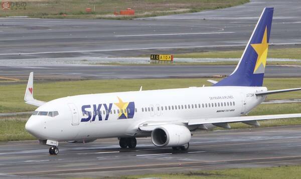 スカイマークの飛行機(2019年、伊藤真悟撮影)。