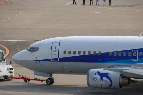 ANAグループのボーイング737-500型機は1995(平成7)年に、当時のANK(エアーニッポン。2012年にANAと合併)で導入されたモデルです。短いことから太く見えるその胴体などから「スーパードルフィン」の愛称を持ち、エンジンの側面にイルカのロゴが描かれているのがトレードマークです。北は利尻(北海道)から南は石垣(沖縄県)まで、おもに地方路線で最大25機が運航されていました。